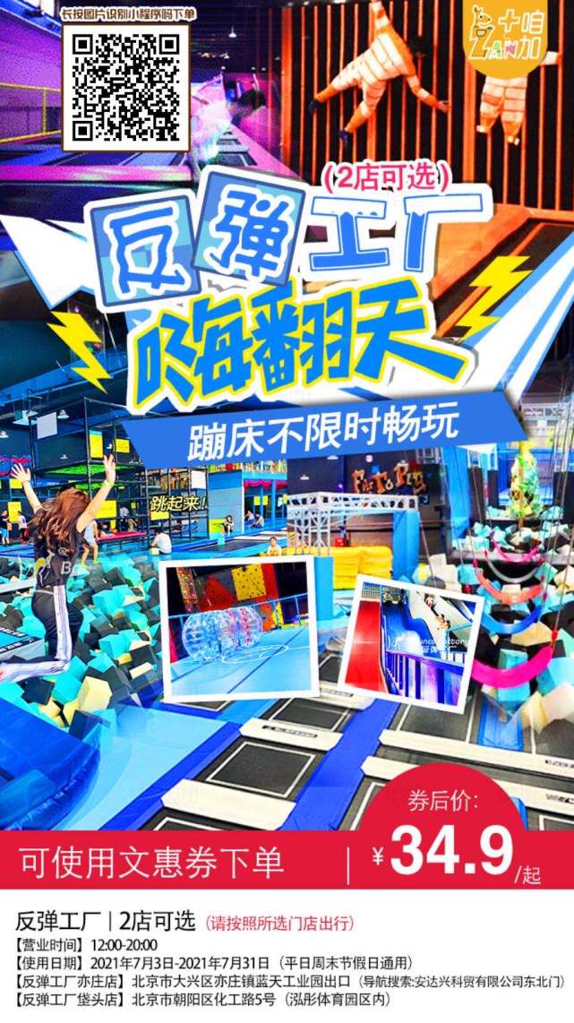 【亦庄店&垡头店】文惠券后34.9元起抢购反弹工厂蹦床不限时畅玩票,周末节假日可用!反弹工厂蹦床两店可选(墙根网微信公众号回复【文惠券】领券立减)