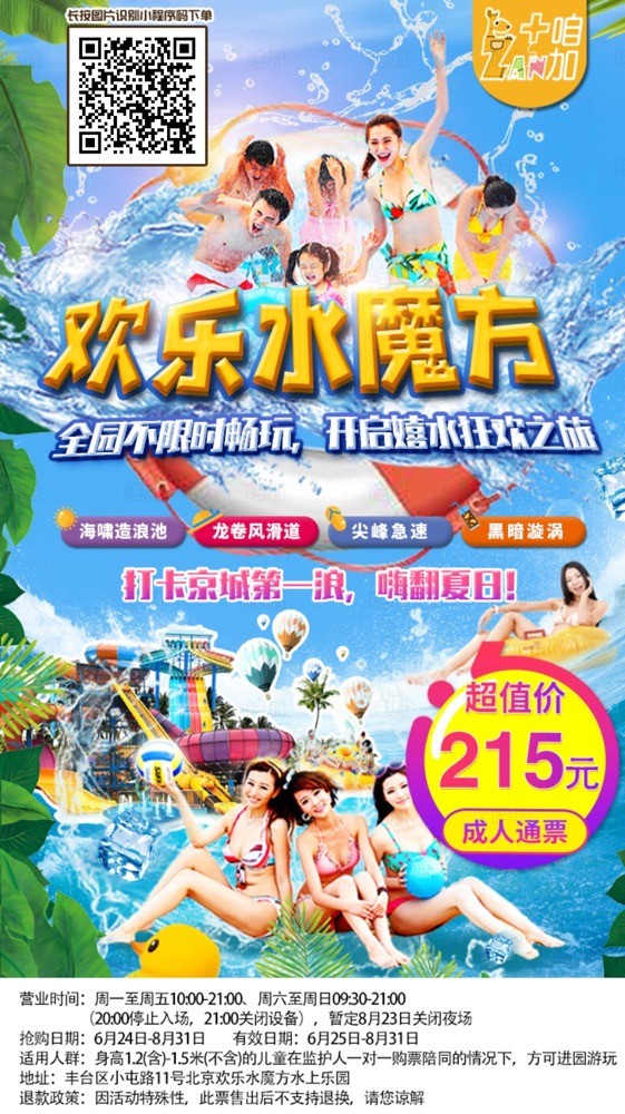 【丰台】只需199元抢北京欢乐水魔方季卡(跨年卡),欢乐水魔方营业季无限次游玩,18个大项,50余条各式滑道畅嗨,有效期到22年8月底!(成人票/亲子票可用北京文惠券!)